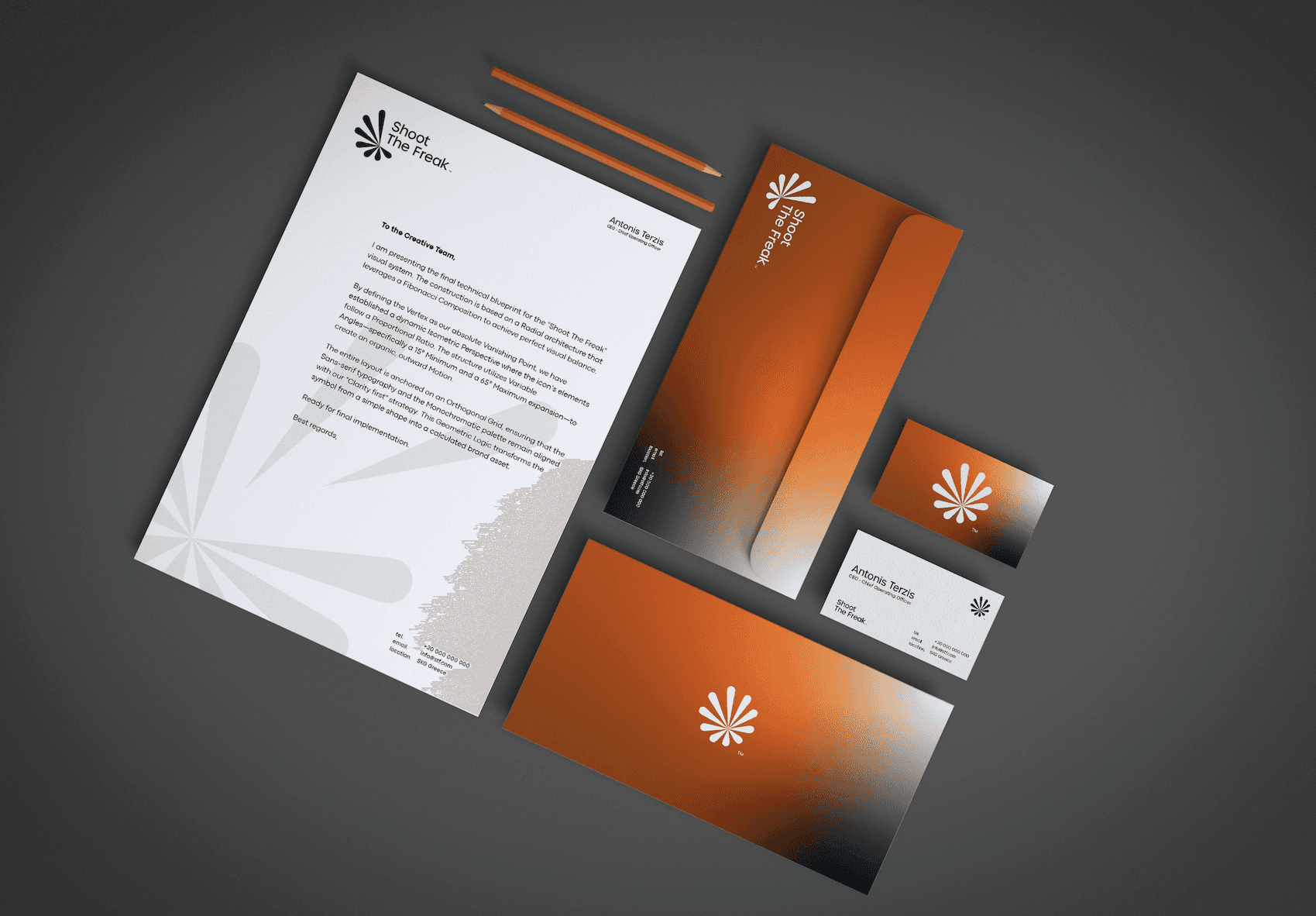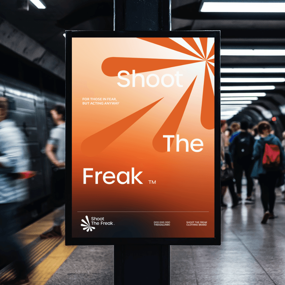 Το λογότυπο αντλεί έμπνευση από το τσίρκο και τη σκηνή. Θυμίζει target και spotlight ταυτόχρονα, σαν να βρίσκεσαι κάτω από τα φώτα ενός freak show όπου όλοι σε κοιτάνε. Η κυκλική του μορφή και η αίσθηση “στόχου” συνδέονται άμεσα με το όνομα, ενώ η σκηνική αναφορά ενισχύει την ιδέα του performance και της έκθεσης. Είναι bold, θεατρικό και απόλυτα ευθυγραμμισμένο με το concept του brand.
